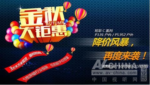 五月初夏日,驕陽未似火,易事達已經狠狠的火了一把!3萬平米現貨轉瞬被搶購一空,為了答謝廣大客戶對易事達一直以來的支持與厚愛,易事達在十月份決定再任性一回,凡是在11月10日前預訂超高清、超穩定、超易安裝,專為舞臺租賃領域而誕生的炫彩C系列戶內P3.91和戶外P5.952,您將獲得超乎想象的價格優惠,數量有限,還不來搶!