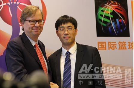 圖為FIBA和奧拓電子現場簽約,雙方攜手合作