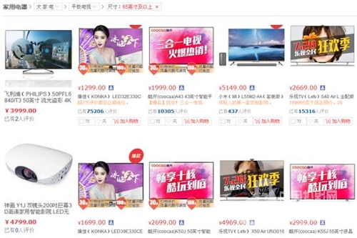 在京東商城的家電類目中篩選出65英寸及以上的電視,最低需要5千元,甚至還有很多上萬元不等。然而,神畫智能影院以電視所無法比擬的200吋超大屏幕的優勢,與索尼、東芝、三星、夏普等國際大品牌同臺競爭,另外,神畫智能投影儀僅僅需要4.3m即可投射百吋巨幕,短焦大屏更是突破了空間的限制,市場售價為4799元,預約搶購價格為3999元,不到四千元的驚人價格也是神畫預約量可以超出三萬人的一大亮點之一。