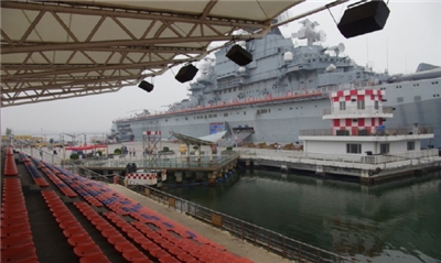 航母主題公園是由“基輔“號航空母艦為主體的大型設施,它為游客提供軍事知識、趣味觀光、家庭休閑娛樂以及在甲板上進行軍事表演等。ACE過去曾在該主題公園成功配置安裝了一套演出擴聲系統,這次,ACE又為“航母花車巡游”及“航母飛車表演” 的兩項演出活動設計調試擴聲系統。