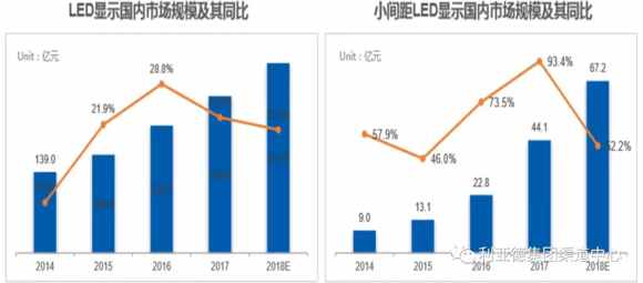 2018年LED整體市場預估325億,LED小間距整體市場預估67億,其中利亞德小間距在市場中的占有率為50%以上。