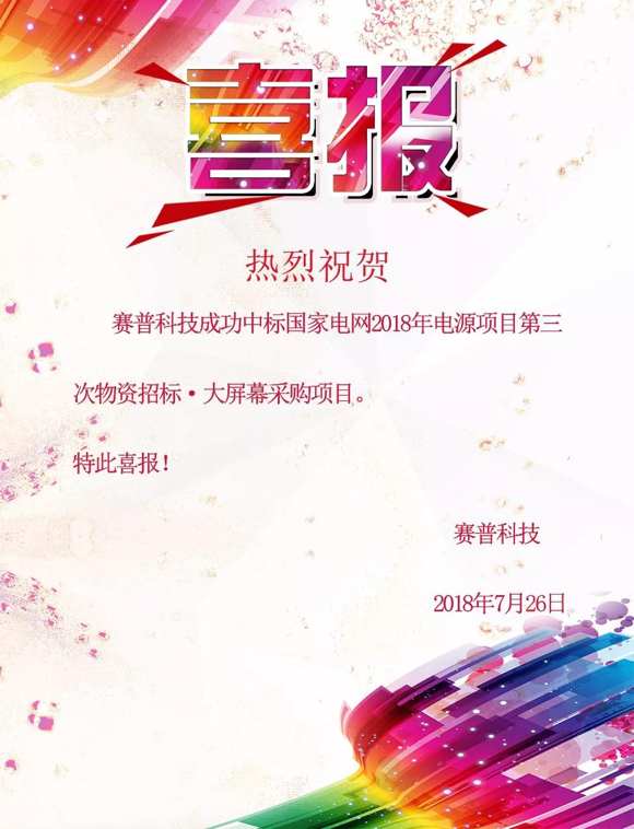 2018年7月,賽普科技參與《國(guó)家電網(wǎng)2018年電源項(xiàng)目第三次物資招標(biāo)·大屏幕采購(gòu)項(xiàng)目》,經(jīng)過(guò)多番的激烈競(jìng)爭(zhēng),最終以良好的信譽(yù)、豐富的行業(yè)經(jīng)驗(yàn)、強(qiáng)大的技術(shù)實(shí)力以及優(yōu)秀的方案、合理的報(bào)價(jià)贏得了招標(biāo)單位的肯定,順利中標(biāo)。