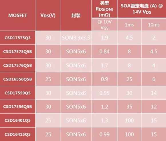 表1:用于12V熱插拔的MOSFET