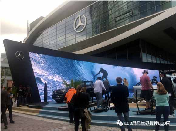 法蘭克福車展是德國歷史最悠久的展覽,每兩年來自世界各地的汽車工業領域從業者都齊聚歐洲金融中心。在第67屆法蘭克福車展中,奔馳的戶外展臺設計可謂是別出心裁,使用了奧拓立翔創意LED大型顯示屏,流暢的曲線風格以及極具美學特點的背景墻與奧拓立翔梯形LED大屏完美融合,集中展示了奔馳的最新豪華車型,引人矚目,吸引了大量觀眾與媒體記者駐足觀看。LED造型的立體感與VR相結合,讓越來越多的人參與進來,并對梅賽德斯-奔馳展館感興趣。
