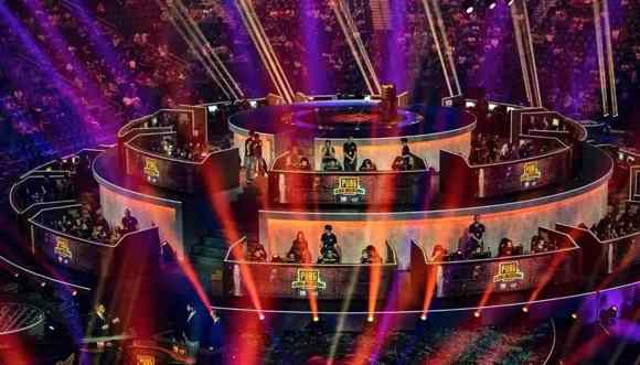 主舞臺是由重疊交錯的大小圓圈作為主題元素,包括評論席、參賽隊伍的位置和選手的座椅都是圓形設計,因為它代表了《絕地求生》游戲里面的“毒圈”,會給選手和觀眾毒圈正在逐步縮小的感覺,營造了比賽角逐的緊張氛圍。