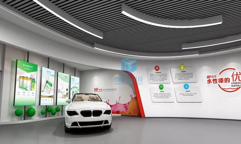 明亮的空間給人遼闊之感,還能提高產(chǎn)品的展示效果。在整個(gè)展廳的內(nèi)容展陳上,重點(diǎn)突出汽車涂料的性能和工藝,讓參觀者獲得對(duì)產(chǎn)品的直觀體驗(yàn)。