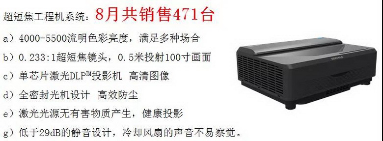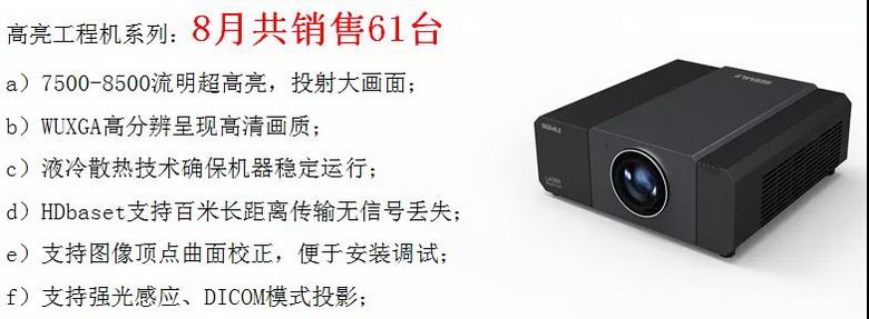 2019年8月,視美樂業務市場捷報頻傳,激光工程機單月銷量突破千臺大關,同比實現大幅度上揚。根據激光工程投影市場的分析報告統計,2019年二季度銷量排名前三的品牌平均銷量在一千兩百臺左右(3個月總計銷量),而視美樂8月單月銷售就突破千臺,成績斐然。