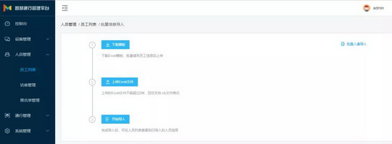 【通行權(quán)限】新增了員工以及訪客的通行權(quán)限設(shè)置,包括通行授權(quán)和解除授權(quán),并支持可通行時(shí)段設(shè)置;支持單個(gè)錄入或者批量導(dǎo)入。