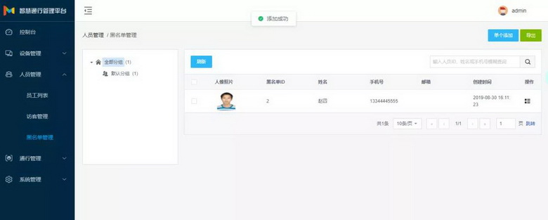支持黑名單單個(gè)添加、編輯和導(dǎo)出操作;支持管理方預(yù)先在后臺(tái)上傳被列入黑名單的人員的照片,以及更豐富的個(gè)人信息,包括姓名、性別、年齡、手機(jī)號(hào)、身份證號(hào)碼、IC卡號(hào)、民族、籍貫、聯(lián)系地址、出生日期等。