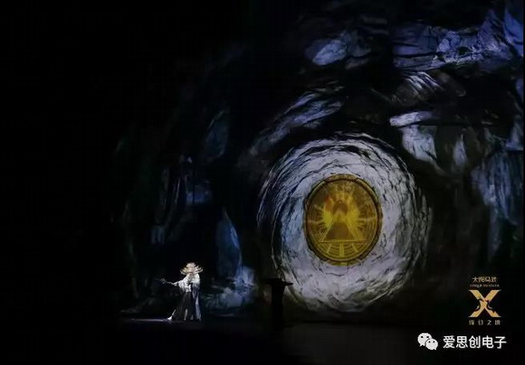 為保持太陽馬戲劇目一貫的多維度沉浸式體驗,《X 綺幻之境》在舞美設計上可謂是精雕細琢,下足了功夫。一個 200m 寬的巨型舞臺坐落在劇場中央,9 個 11m x 11m 的鑲板中央結構讓布景可以任意組合。觀眾席總體可容納 1500 人,按照劇情的需求設計為東西兩個看臺,分布在劇場的東西兩邊,均可支持 360° 旋轉和平移。開場時兩個看臺的觀眾完全相背而坐,但隨著劇情的發(fā)展,座椅會開始旋轉、平移,跟隨著舞臺的變化,兩區(qū)的觀眾并肩沉浸入共同的場景。舞臺背景聲光電特效的設計更是凝聚了大量的“黑科技”,無論是 3D 視覺道具、光雕投影,還是新奇的暗門設計,都會讓現(xiàn)場觀眾為真正的 “沉浸式” 觀看體驗而感到無比驚艷。