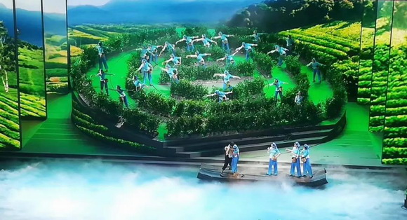 整場晚會旋律高昂、振奮人心,不僅有融合詩畫、雜技、威亞表演等多種形式的新穎節(jié)目,經(jīng)典的優(yōu)秀雜技和舞蹈劇目,更有魅力十足的情景表演、秦聲秦韻,紛呈的節(jié)目處處彰顯陜西元素,同時又以震撼的視覺效果強調(diào)著時代化的表達。此次晚會的舞臺燈光由劉文豪執(zhí)掌設(shè)計,將200多臺繽紛閃耀的彩熠燈融于多元的新媒體技術(shù),融于精湛的特色表演,呈現(xiàn)出麥田金浪翻滾、茶山綠波蕩漾的逼真場景,一場充滿人民性、藝術(shù)性的高水準視覺盛宴就此呈現(xiàn)。