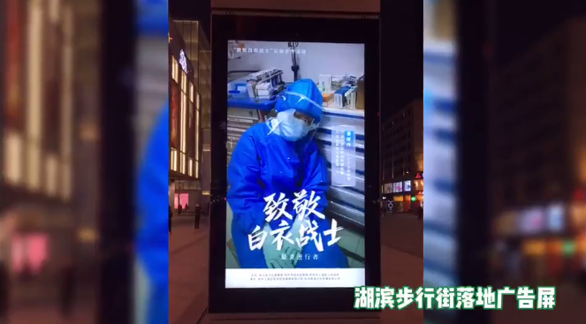 為了致敬醫(yī)護人員,歡迎白衣天使們的榮耀歸來,杭州濱湖路步行街的戶外一體機,同時集體亮屏,打造出了一道璀璨亮麗的風(fēng)景線,頻頻感動著街上每一位過路的行人。