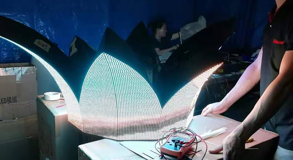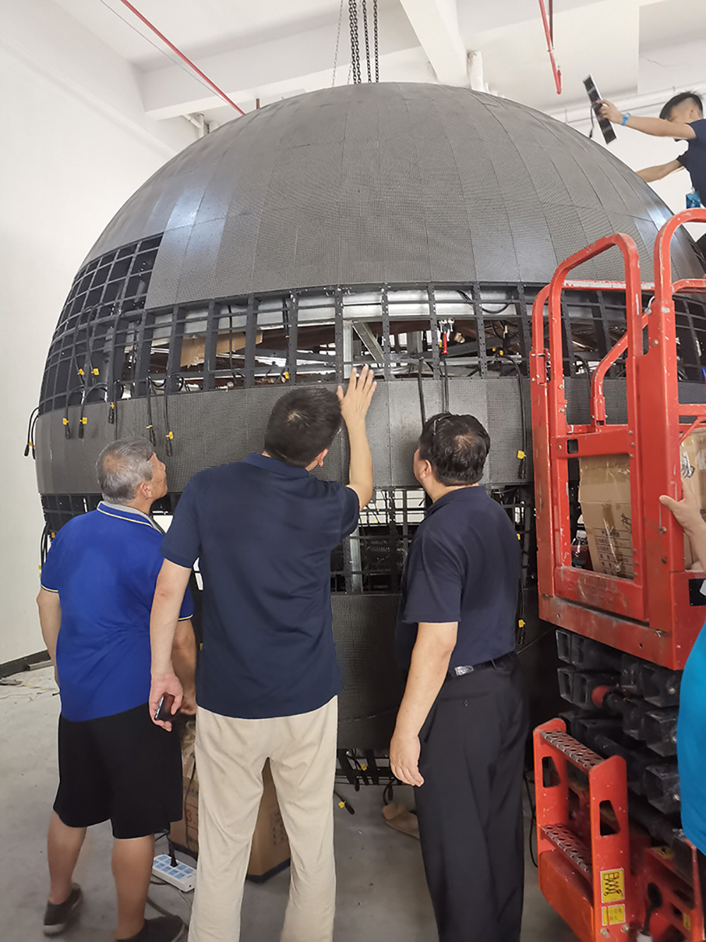 這個“中國最美石榴”屏幕點間距為6mm,亮度最低為6000cd/平米,防水等級為IP65;主要材質選用鋁合金,利用高精密度的激光切割,箱體精度控制在0.5mm以內,底殼面罩的精密度控制在0.1mm以內,面罩僅0.8mm,折彎角度為82度;運用單體模組防水方案,(模組泡在水中仍能正常顯示)對控制系統、電源、模組等部件都進行冗余備份,能很好適應烏魯木齊(-40°~40°)嚴苛的工作環境。