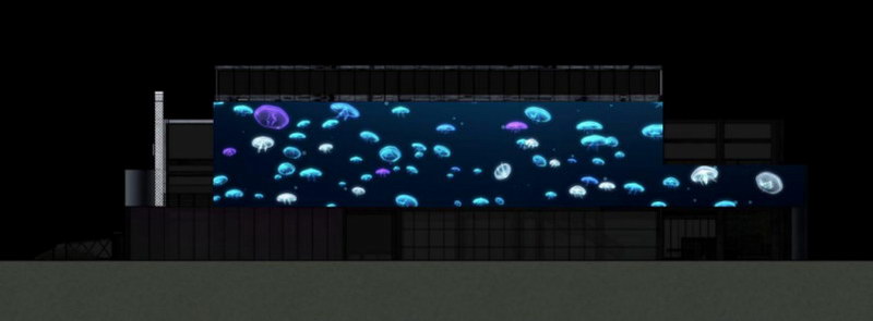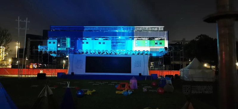 31000流明高清工程投影機將表演舞臺背后的墻面作為展示屏。45米X10米的超大尺寸展示,運用不一樣的藝術動態展示,產生了超乎想象的震撼效果,是充滿想象力的影像與建筑物搭配的完美結合。