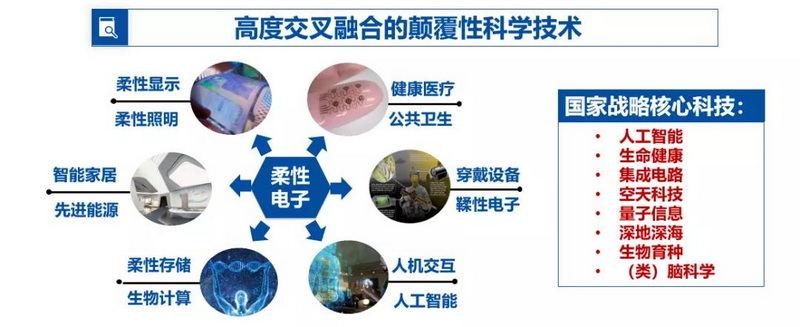 “以柔性電子技術引領科技創新柔性電子產業完美符合了“中國創造”。其至少從三個方面順應了國家的戰略需求:一,關鍵材料、加工技術、基礎部件長期被國外壟斷;二、智能化特種裝備關乎我國國土與公共安全;三、“科技創新2030” 提出提升光電子器件及集成技術。所以,未來信息芯片、新型信息裝備、電子器件創新三個層面都需要柔性電子領域的自主創新。