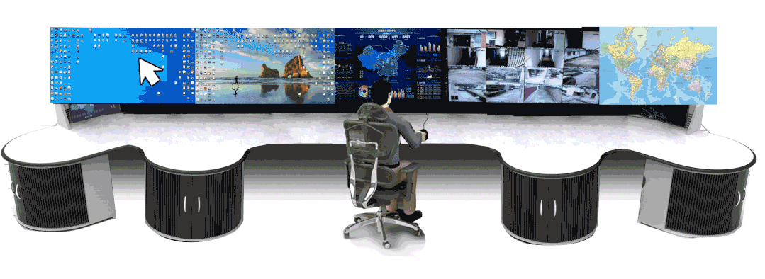 傳統指揮中心中有些任務需要多人分別操作不同業務主機才能完成,而分布式坐席可以實現一套鍵鼠跨多個顯示屏幕同時操作不同電腦主機,一個人即可完成多個人的操作,實現一人多機,高效辦公。