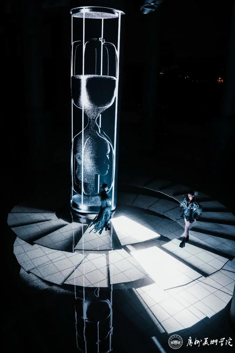 《屏視世界:融合與聚變》是一個融合廣州美術學院視覺藝術設計學院數字媒體藝術2021屆18名畢業生和廣州美術學院工業設計學院服裝與服飾設計專業2021屆13名畢業生的一次沉浸式新媒體服裝藝術展演的創新嘗試。《屏視世界:融合與聚變》的舞臺并不單一指向技術手段上的跨學科交流,更是我們對自然和未來應有的敬畏和憧憬。