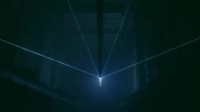 這是俄羅斯創作團隊SETUP在一個充滿工業風的廠房內做的燈光裝置測試,將激光與影像裝置巧妙結合,激光劃過裝置時會點亮對應的影像,仿佛一道天外之光劃過長空。