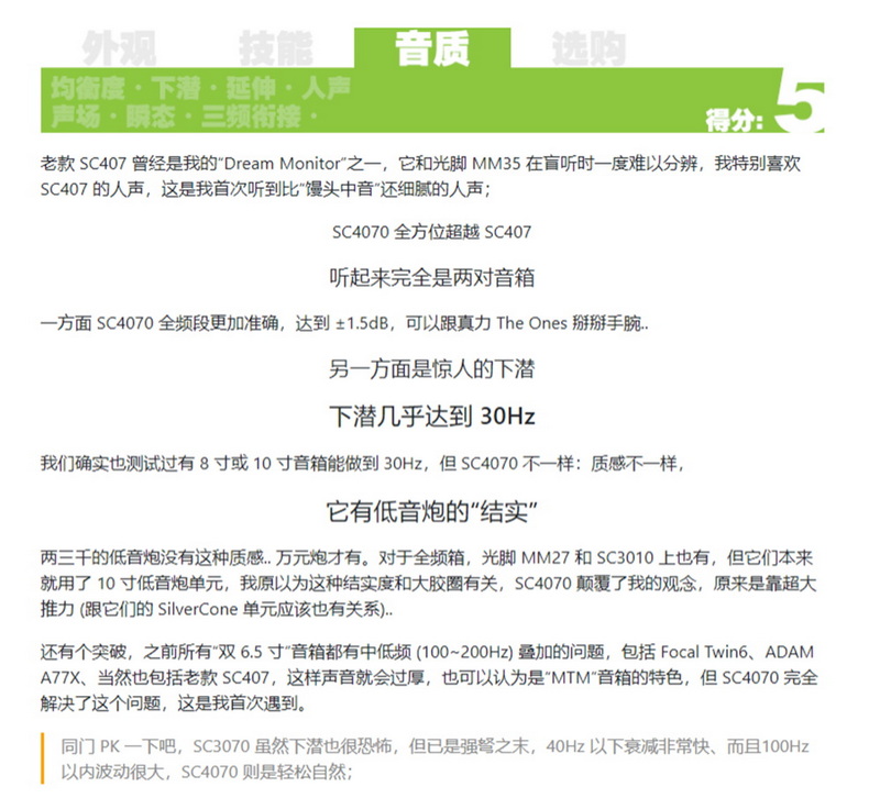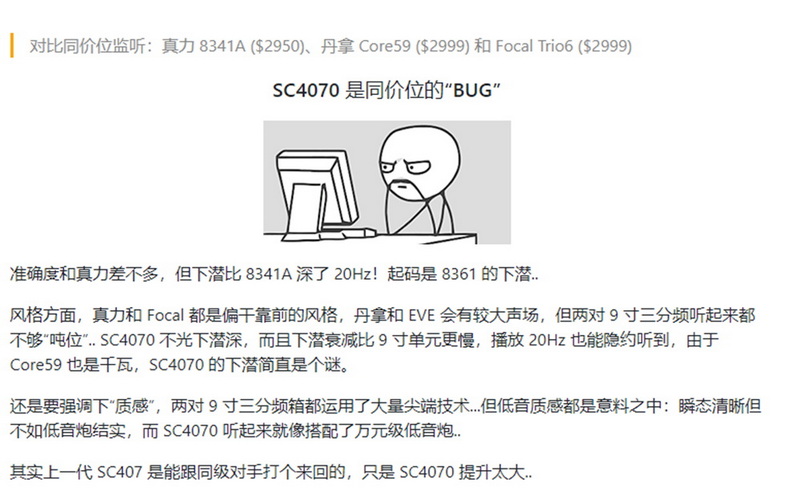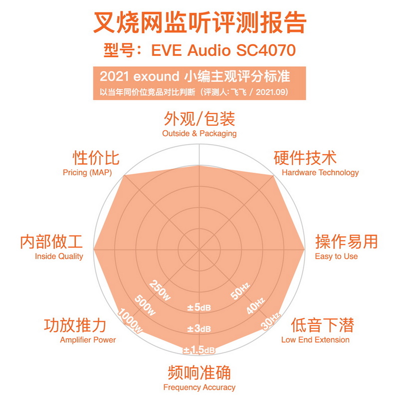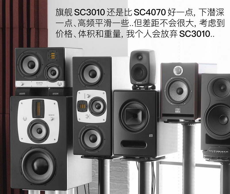 在錄音行業(yè),Main Monitor“主監(jiān)聽”通常要比 Mid-Field “中場監(jiān)聽” 有更大的聲壓和下潛,其實(shí)去年 EVE 推出的 SC3070 (評(píng)測) 就分類到主監(jiān)聽了,貌似 EVE 的“四字哥哥”都定位主監(jiān)聽。