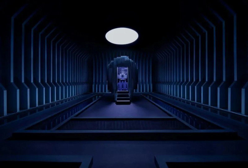 玻璃制成的裝置的地板、墻壁和天花板有機浮雕和散布著的骨頭似的圖案對稱性和和諧性在這里完美呈現并反映著圣所的圣潔