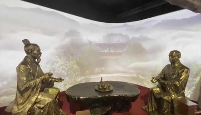 環幕+數字沙盤,環幕播放武夷山茶文化的歷史宣傳片,結合數字沙盤讓觀眾在沉浸在武夷山美麗的風光里學習了解茶文化。