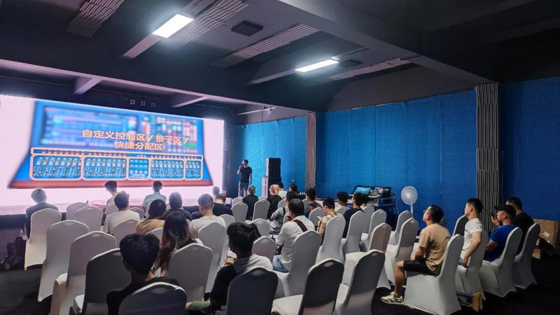 然后,韋周成先生開始給大家講解HD96-24的主要技術特點,其中包括了人工智能AI功能、manchino多重編輯功能,以及自定義控制區等等,讓臺下的人都能充分了解到HD96-24的方方面面。同時,他結合HD96-24所做過的一些經典案例,如R1SE告別限定演唱會(北京站、上海站)等等,進行更詳細的講解,讓大家聽得津津有味。