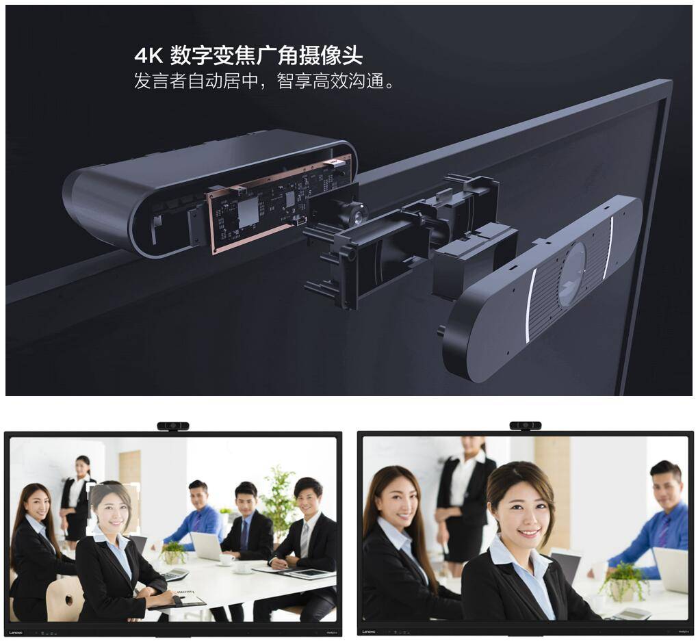T86pro的智能化設計讓人與設備之間擁有更優的交互體驗,通過內置的4K可變焦廣角攝像頭,通過智能聲源定位,在演講者發言時,能夠居中放大呈現當前發言人畫面,讓參會者享受“見屏如面”的會議體驗。