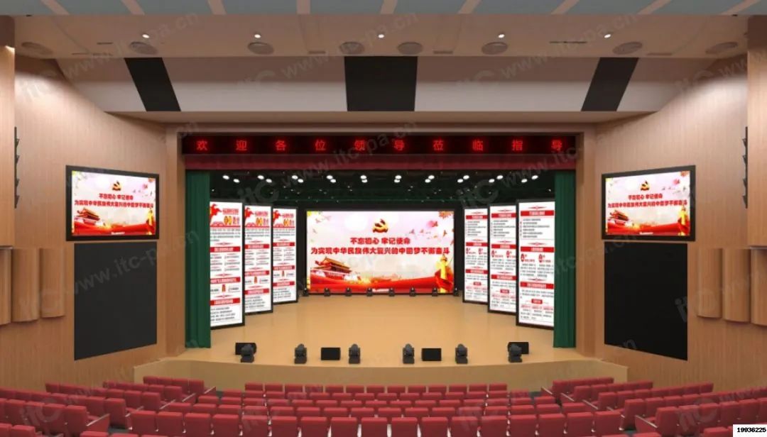 itc報告廳建設遵循廳堂用途的多樣化,建設融合智能管控、線陣擴聲、LED顯示屏、舞臺燈光、專業擴聲等系統,滿足報告廳在多場景模式下的使用需求,同時整合聲光電視訊系統,實現對廳內設備信號的任意調度和管控,確保多種場景模式下設備應用狀態一鍵可視化切換,以及個性化需求模式預設一鍵調用。