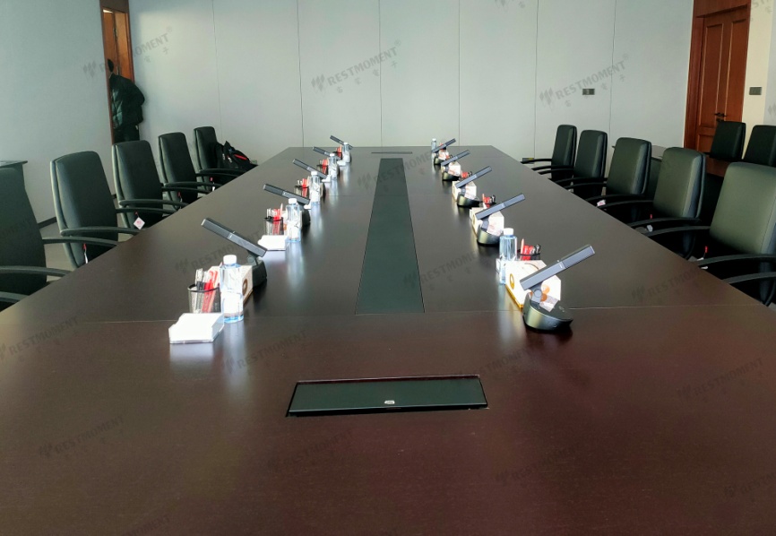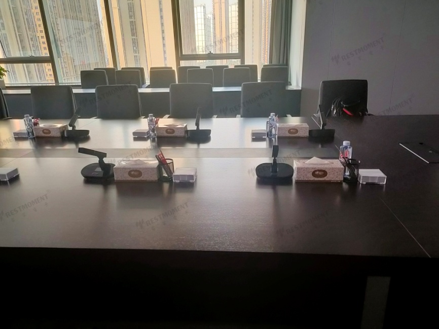雷蒙電子第四代全數字無線會議系統RX-W2系列,采用2.4G無線全數字射頻技術,抗干擾性、保密性更強。擺脫有線的束縛,免去桌面開孔的繁瑣工序,不影響整體美觀,安裝維護更為便捷。無線會議話筒高保真音質,超遠拾音距離,并帶有LCD觸摸控制屏,具備時鐘顯示、會務服務、手動/自動增益調節、5段EQ均衡調節等等功能,方形話筒咪桿可根據發言者的需求上下55度,左右180度旋轉,操控靈活,完全滿足安徽省交通控股集團有限公司的多種需求。