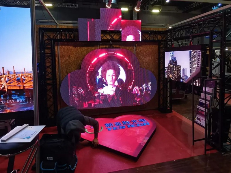 本次展會上,新亞勝光電向大家展示的是舞美租賃的一個集成式創意造型應用,它由MG系列戶內、戶外、切角箱體及創意延伸系列組合搭建而成。展位正中間的“心形”屏格外吸睛,吸引了無數參展觀眾前來咨詢。