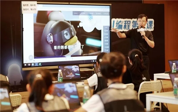 中關村第三小學課程部副主任郝石佩帶鄉村孩子進行“AI編程第一課”