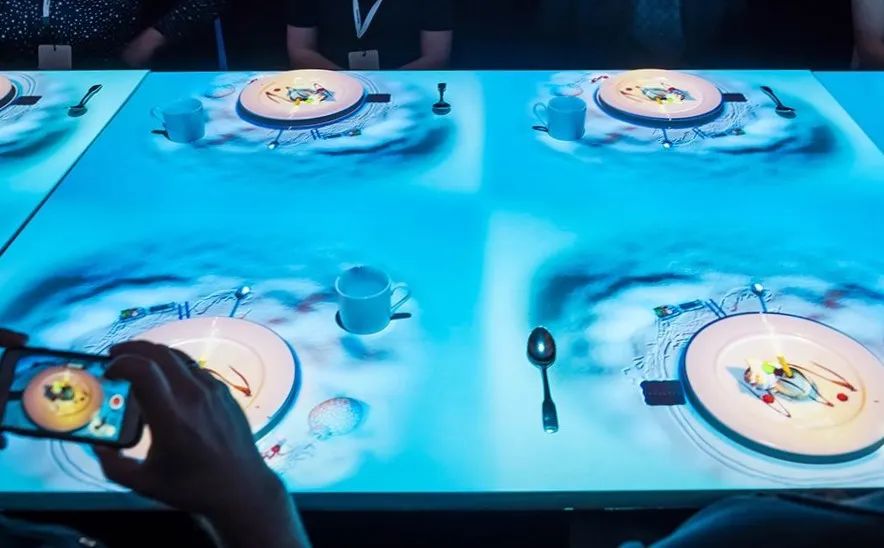 將食物以桌面互動投影的形式呈現,顧客可以在用餐期間與影像進行互動、游戲等,體驗會更加深刻。
