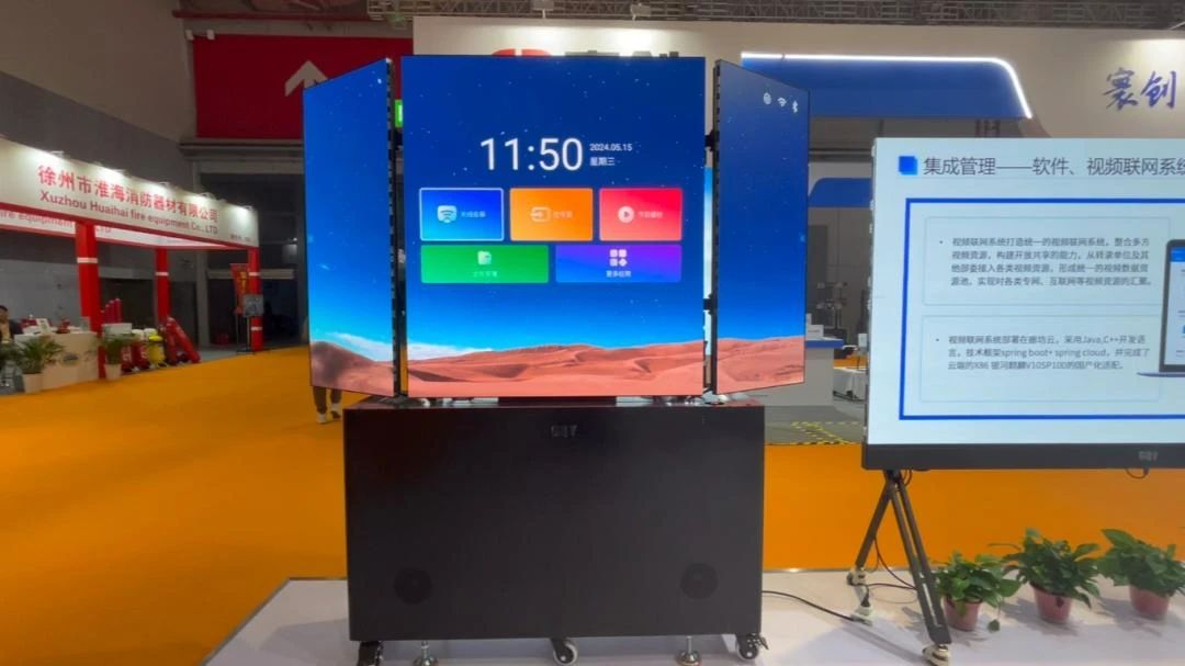 在2024年長三角應急展上,GQY所展示戰地視窗——快速安裝折疊屏,分布式/KVM坐席管理系統、AR三維全景管控系統三大產品及方案吸引了來往參展者駐足,也是該展會唯一一家針對應急領域的AR全景解決方案展示者。
