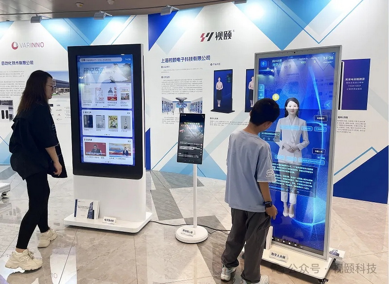 視頤科技展示了數字人、電子借閱機和移動隨心屏三個產品。