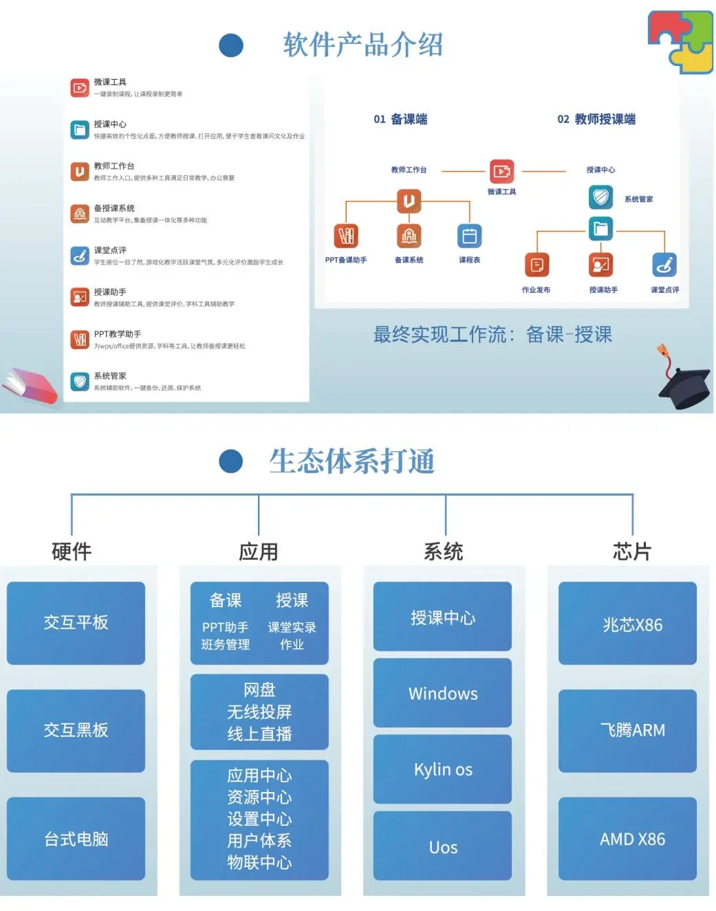 其可以有效建立在局域網、互聯網以及物聯網的基礎上,以智慧普教交互平板、智慧黑板等教育硬件產品為核心,融入智慧班牌、智慧講臺、視頻展臺等教學硬件設備,配套資源服務教學平臺、集控系統以及錄播系統等,進一步打造幼教/普教/高職智慧教室解決方案以及多媒體教室、課程研討室、錄播教室、培訓室、實驗室等細分化教育場景應用解決方案,以科技助力智慧教育創新!